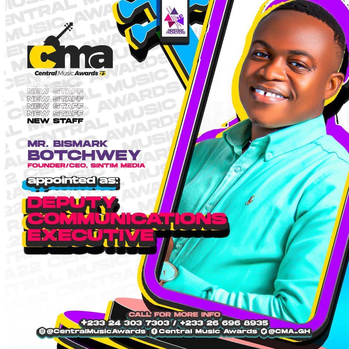 Bismark Botchwey, also known as Sintim in the media industry, has been appointed as Central Music Awards’ Deputy Communications Executive. An annual awards scheme organized by Heritage Promotions.
