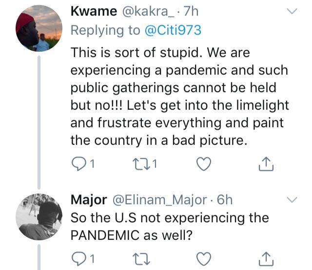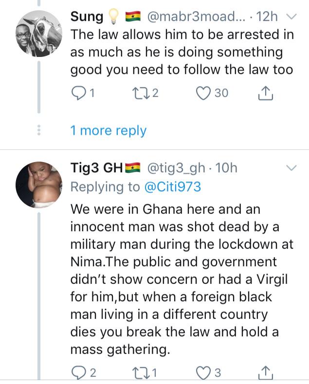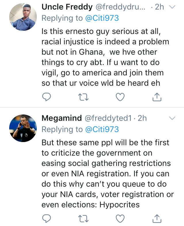 Reacting to the occurrence, some Ghanaians are of the belief that Ernesto and his group should not be out there protesting at the time we are battling a pandemic. But others also argued that there is pandemic but protests against racial injustice are going on in America and elsewhere in the world and as a matter of fact, the government has lifted the ban on social gathering for churches and mosques – how is a vigil different from those?