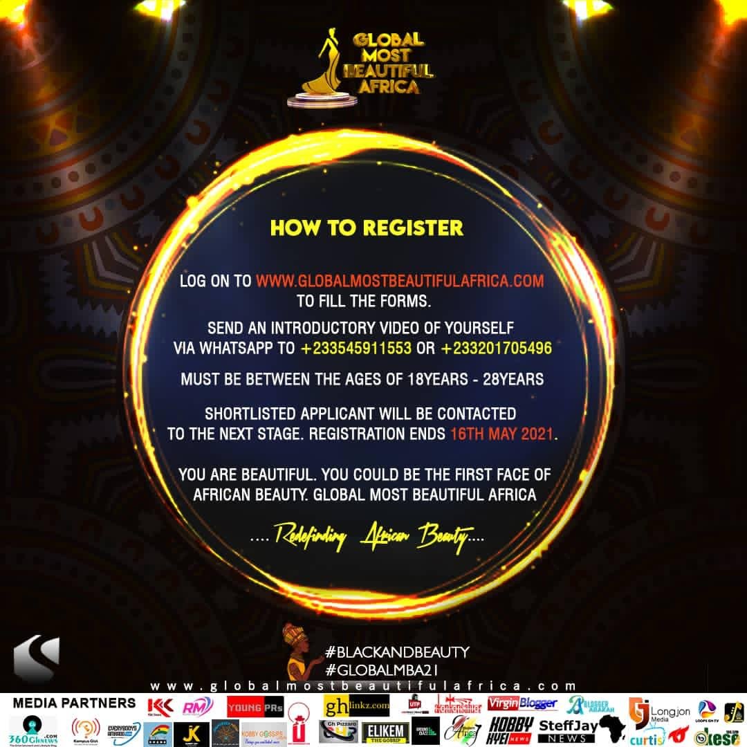 A release by SMART FOCUS MEDIA on Wednesday, 14th April 2021, which announced the opening of registration indicated that ladies between the ages of 18-28 years can register by login on to the official website www.globalmostbeautifulafrica.com.