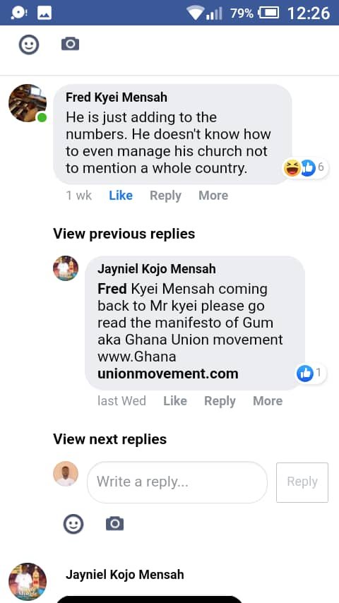 Fredyma made this controversial statement when Arnold Mensah Elavanyo of Zylofone F.M Afro Samba fame took to his Facebook wall to deliberate on the prowess of Kyiri abosom and his capability of winning the December polls election elections.