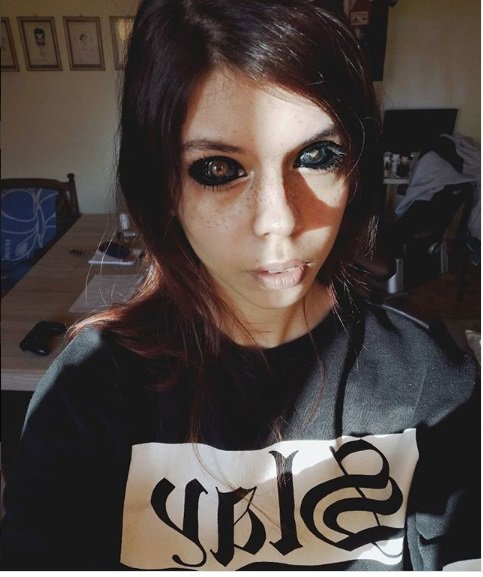 The model known as Aleksandra Sadwoska who lives in the city of Wroclaw in Western Poland engaged the services of a tattooist to dye her eyeballs black so she can have her eyes looking the same as rapper Popek according to online reports.