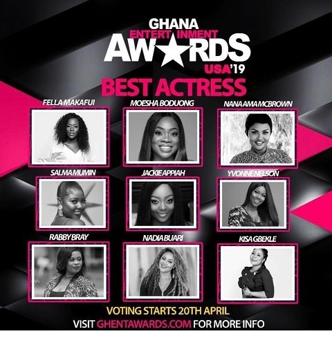 Nominations for the 2019 edition of Ghana Entertainment Award USA have been released and actress Moesha Boduong has been nominated in the Best Actress category for her works in the past year.