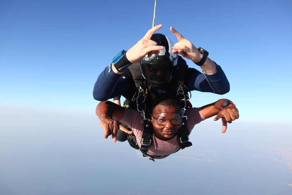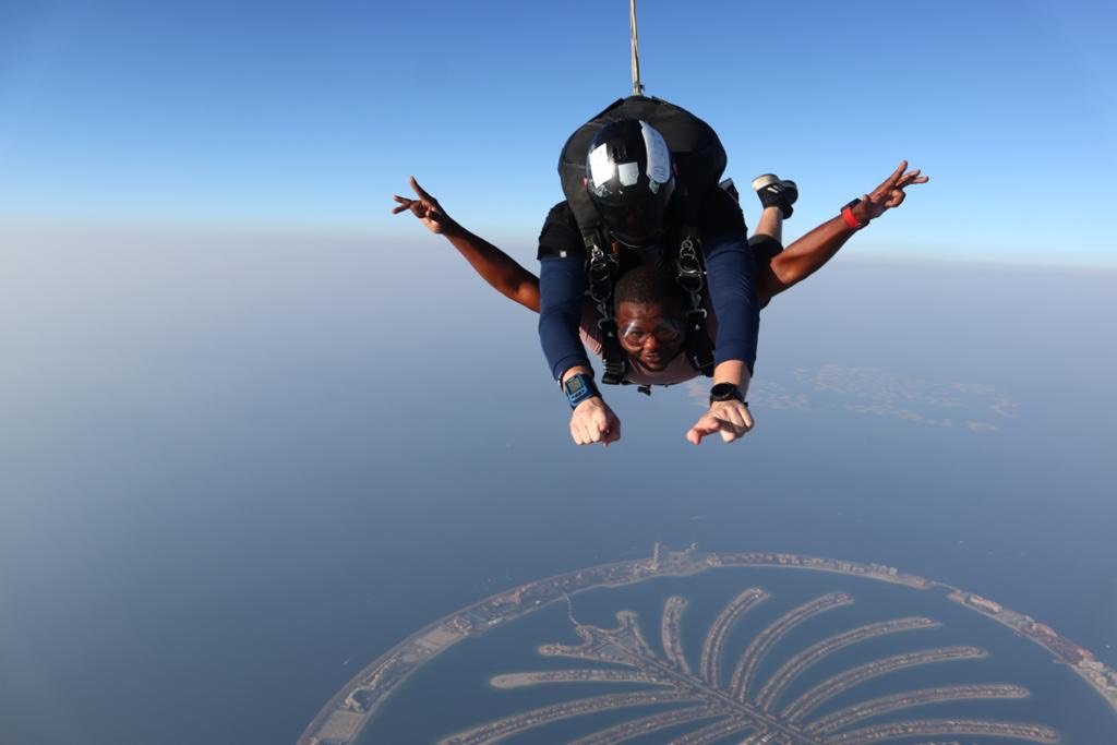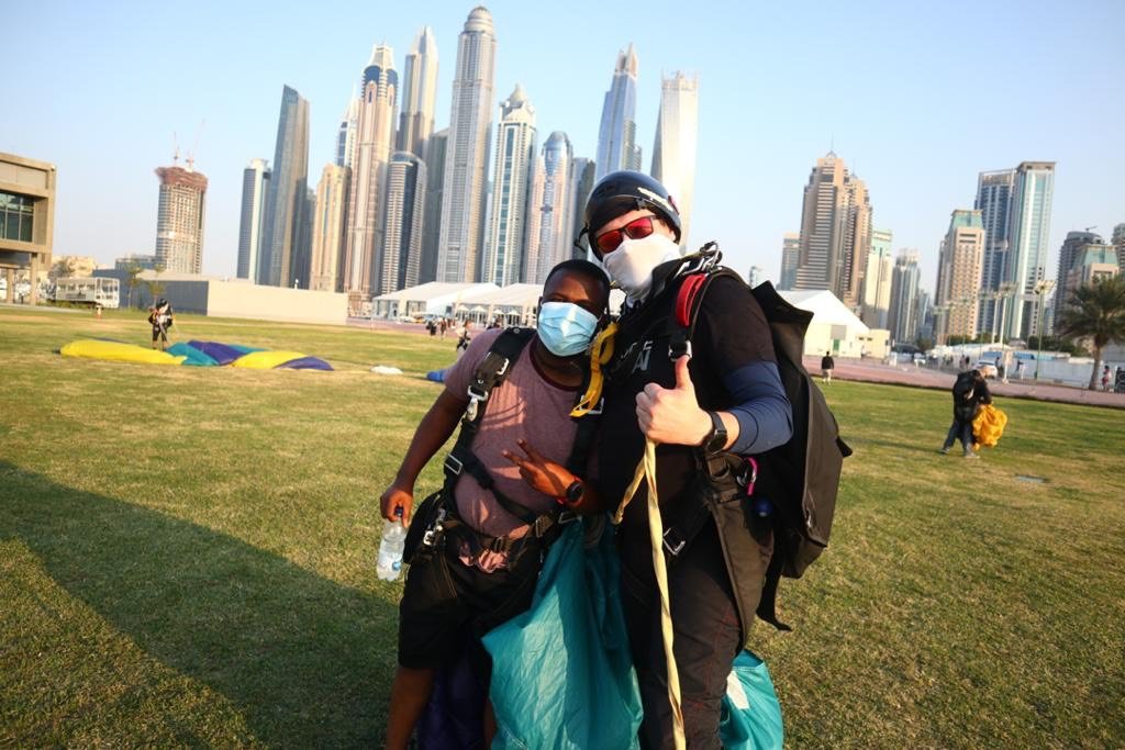 [PHOTOS] Meet Mr. Ameleke Henry the C.E.O of Pizarea who Becomes the First Ever Ghanaian To Skydive on Dubai’s Palm Drop Zone