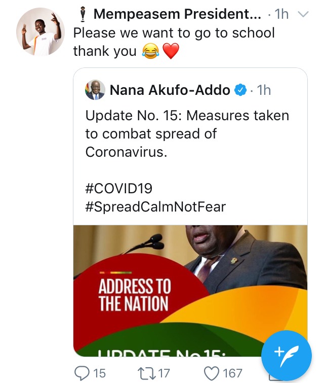 Ahead of the president’s address in the evening of today the 16th of August 2020 at exactly 8:00 PM, many Ghanaians have expressed their expectations and desires to the president in response to the notice he served on his official Twitter page earlier today.