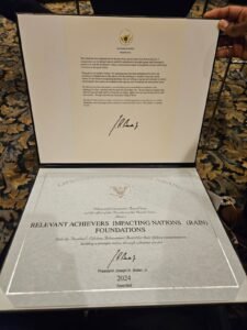 It was a colorful event on the evening of Saturday 10th August 2024 at the Malvern Retreat house in Pennsylvania, USA. Organizations sold out to various voluntary services that benefit the society were honored with the US President’s Lifetime Achievement Award. And this included the Relevant Achievers Impacting Nations, also known as RAIN Foundations.