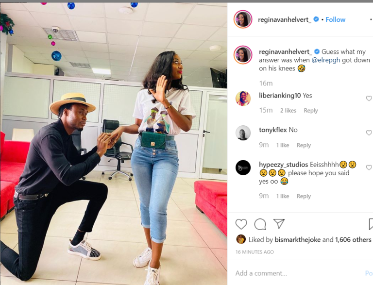 A controversial photo privy to ENewsGhana.com which was shared by Regina Vanhelvert on her official Instagram page suggests the rapper proposed to her.