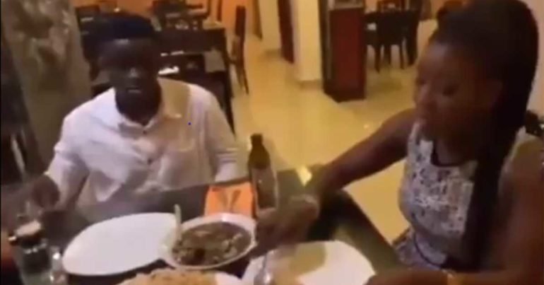 An old video that popped up online a few hours ago shows scenes of brokenhearted Sammy of KNUST and his now ex-girlfriend, Nana Ama having a good at a restaurant.
