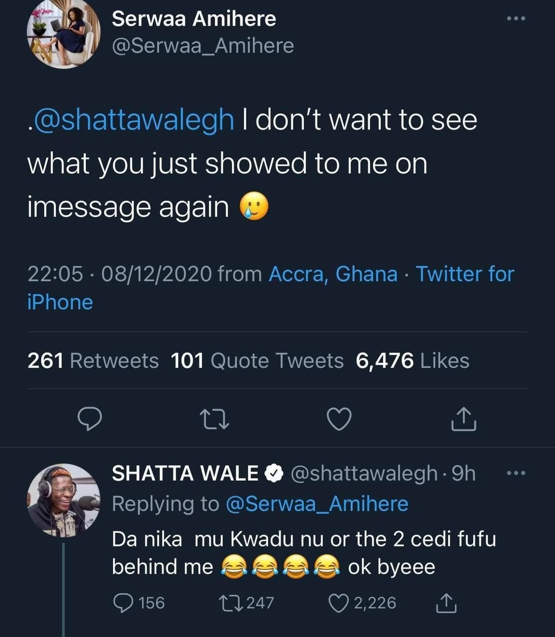 Ei @shattawalegh and @Serwaa_Amihere 😂😂😂 pic.twitter.com/sUkOTn4Dvx